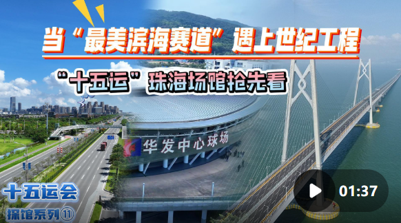 (当“最美滨海赛道”遇上世纪工程,“十五运”珠海场馆抢先看!|探馆,时长共1分37秒)
