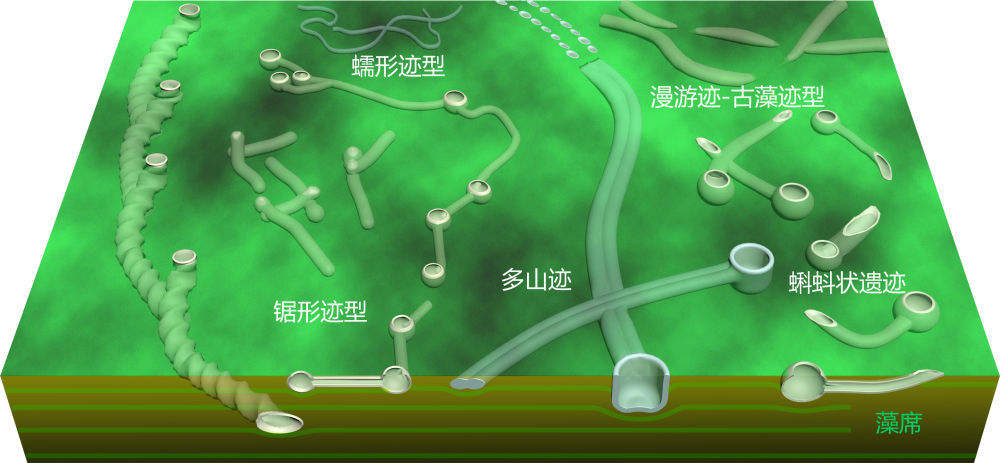 石板滩生物群的遗迹化石复原图。(中国科学院南京地质古生物研究所供图)