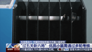 据介绍,除体能方面的筛选外,科研人员还为小鼠设计了“闯迷宫”等测试环节,用以考验小鼠的记忆力和智商,确保其在空间环境中能够准确找到食物。
