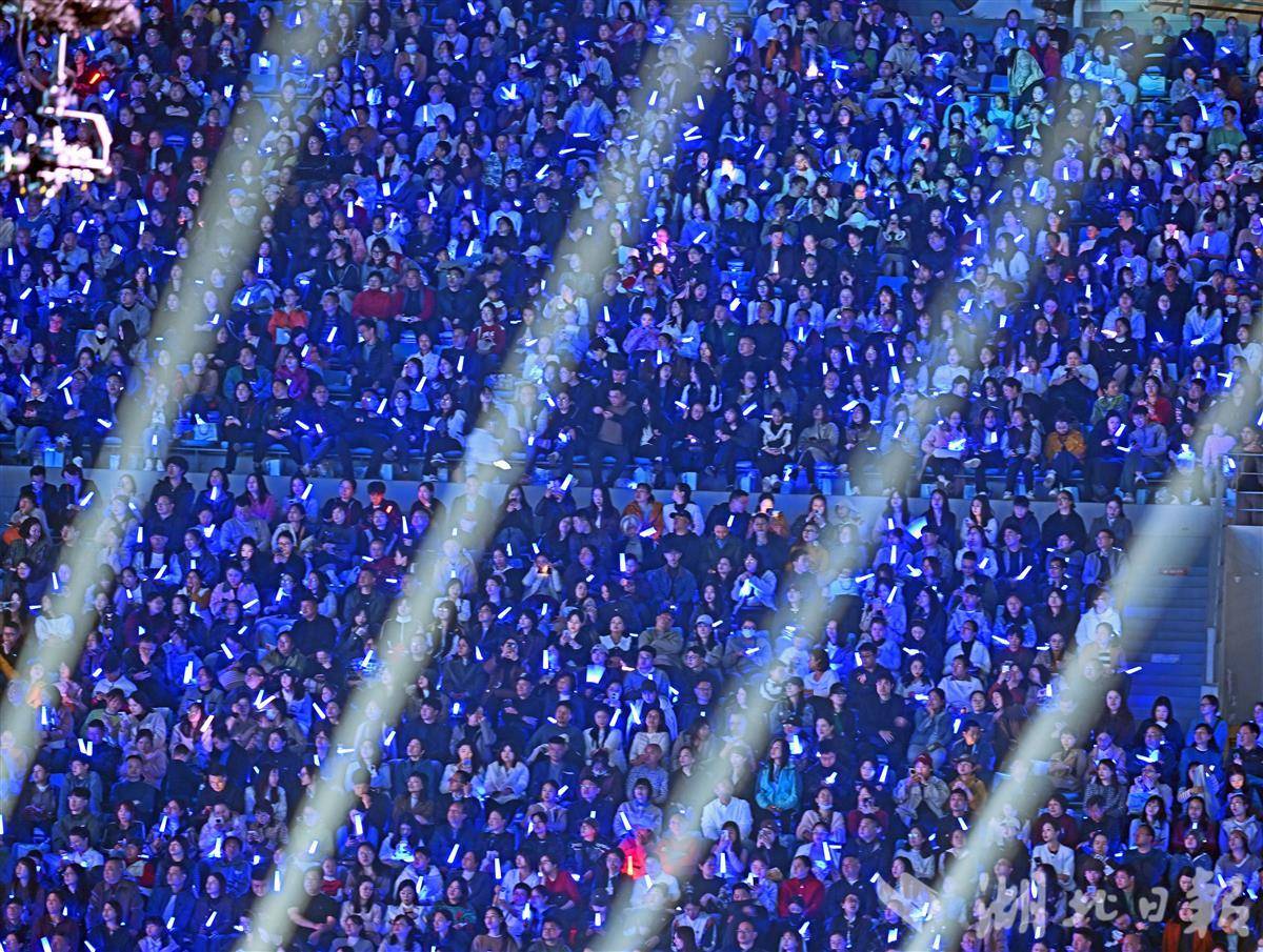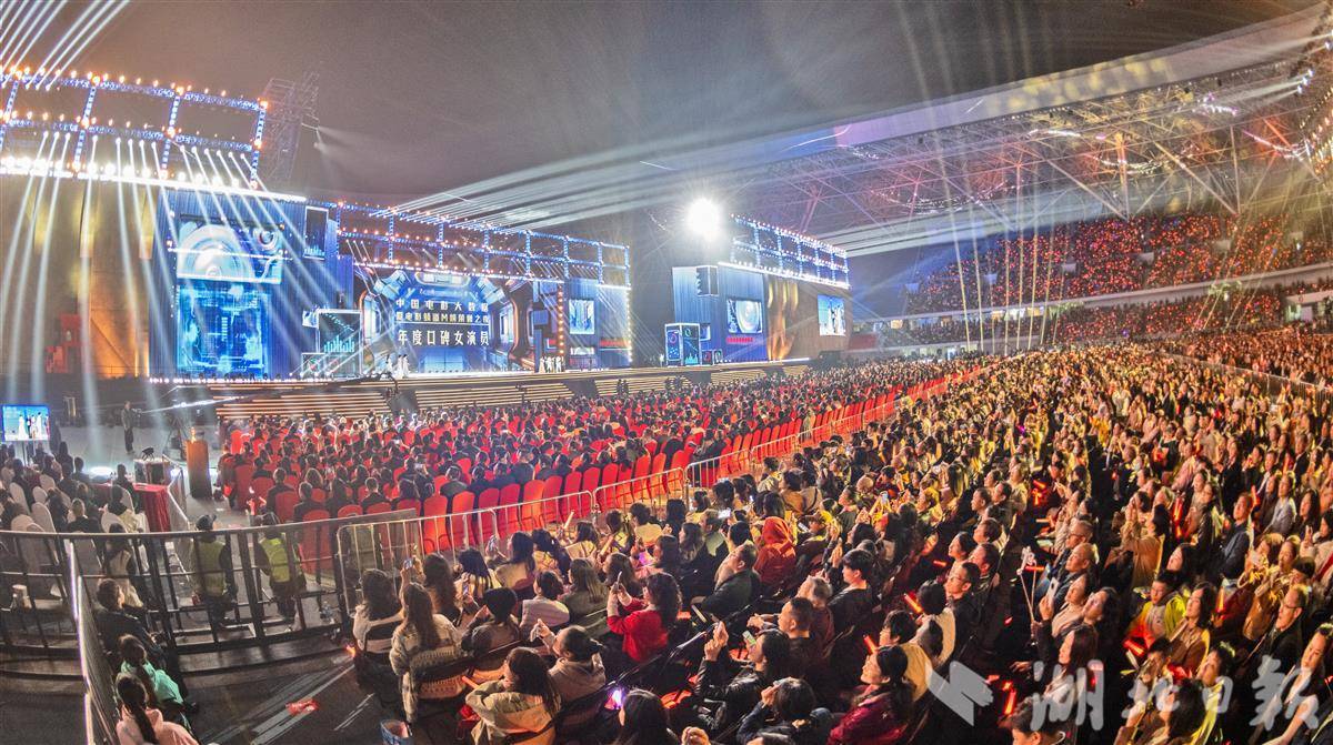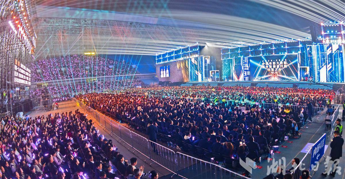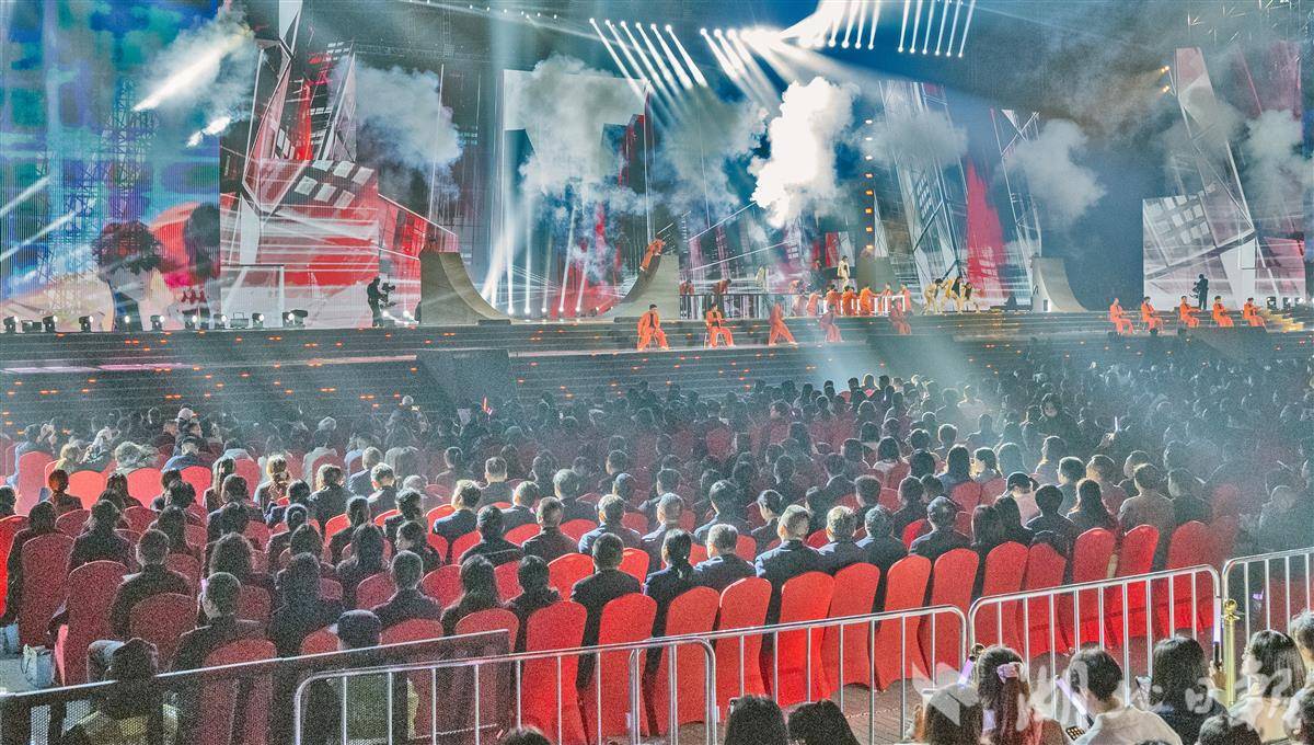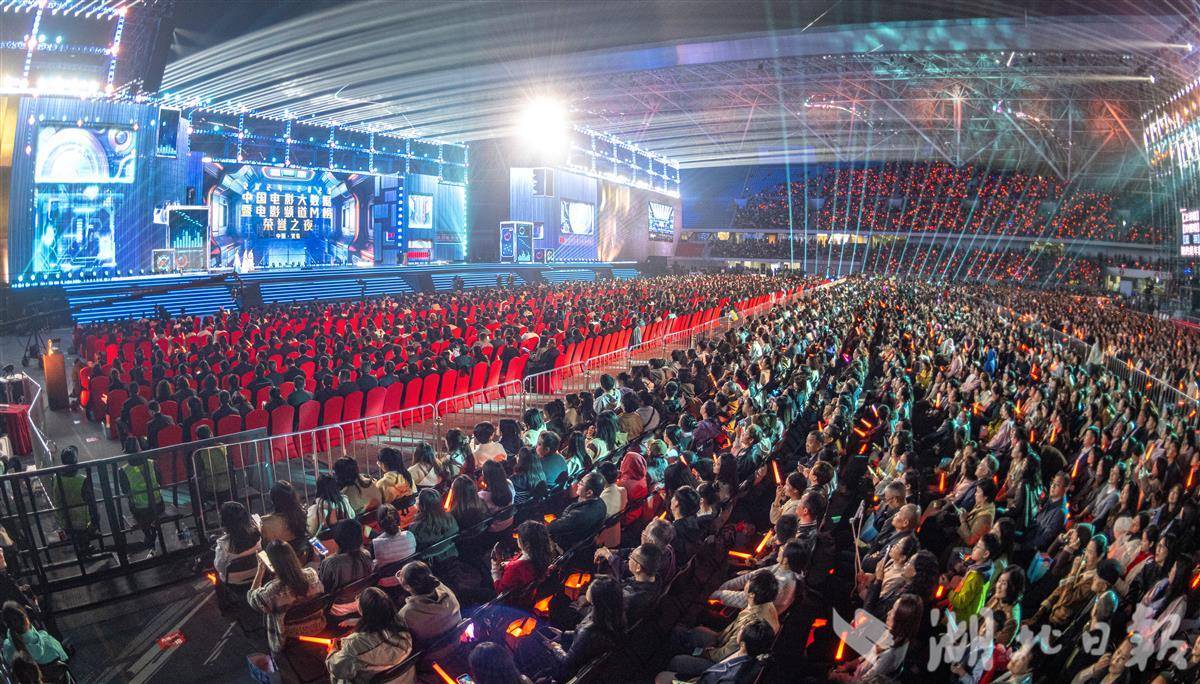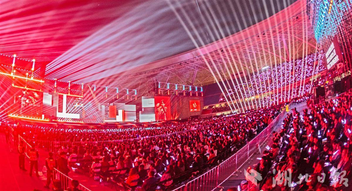 10月30日晚,“点亮长江”——2025长江文化艺术季在宜昌闭幕。为期49天的2025长江文化艺术季,以艺术为桥、科技为翼、文旅为魂,倾力呈现荆楚之姿、长江之美、中国之韵。闭幕式后,两万余名嘉宾观摩了2024—2025年度中国电影大数据暨电影频道M榜荣誉之夜活动。(湖北日报全媒记者 刘曙松 摄)