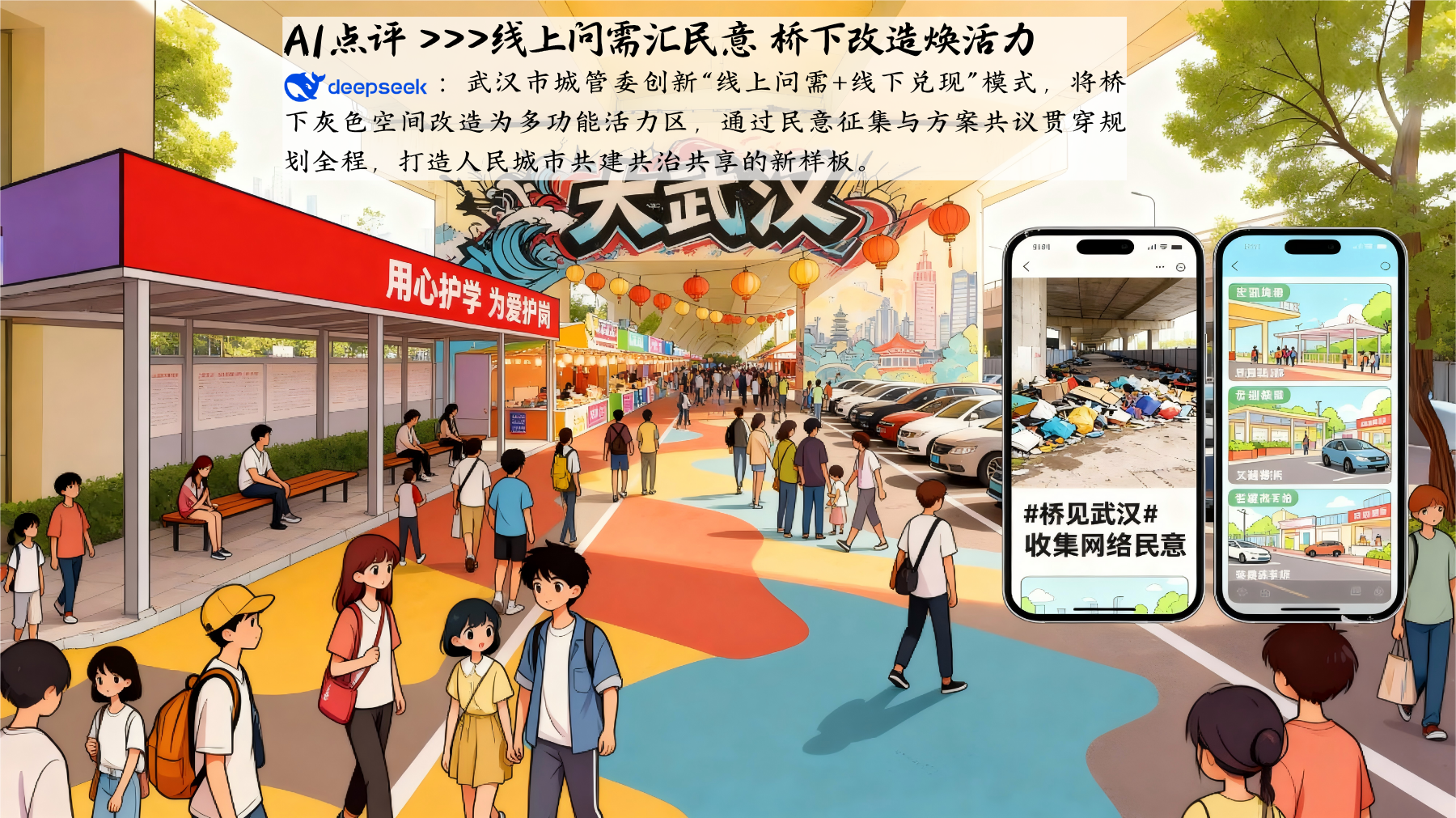 项目启动前,武汉市城管执法委依托“武汉城管”微信公众号、周边社区网格群等新媒体平台,围绕#桥见武汉#话题广泛听取市民和学校群体的意见建议。市民通过留言、互动等形式表达诉求,“学生通行安全”“停车难”“桥下昏暗”等成为高频诉求。