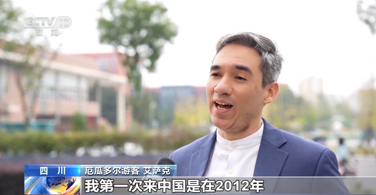 厄瓜多尔游客 艾萨克:我第一次来中国是在2012年,我亲眼见证了中国这些年来的发展,不仅仅是建筑,也有城市绿地的建设等等。四通八达的地铁系统,还有高铁、火车以及机场,我感觉非常开心,能够生活在一个发展如此之快并且能够平衡城市发展和人民需求的国家。