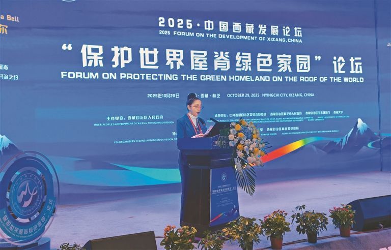 10月29日下午,2025·中国西藏发展论坛“保护世界屋脊绿色家园”论坛在林芝市举办。来自科研院所、国际使团、高校及产业界的代表齐聚一堂,共话西藏生态保护成就,共谋绿色发展未来,共绘人与自然和谐共生的美好蓝图。