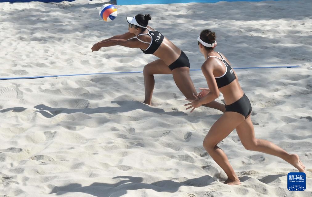 当日,第十五届全国运动会沙滩排球比赛在香港维多利亚公园开赛。