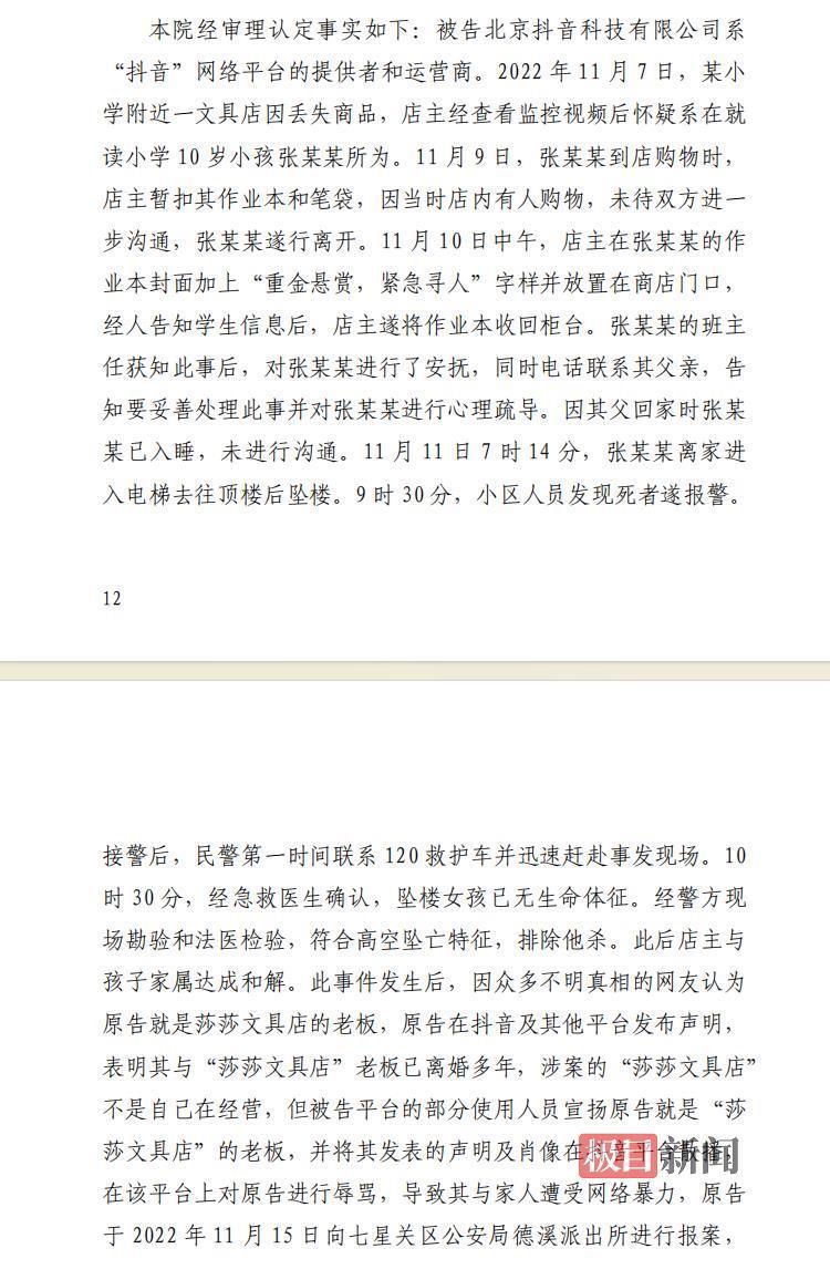 10月31日,莎莎告诉极目新闻记者,她与前夫婚姻存续期间,两人在毕节当地开了一家以自己名字命名的“莎莎文具店”。2021年两人离婚后,文具店由前夫经营。2022年11月7日,文具店丢失了商品,前夫怀疑系10岁女孩张某某所为,就暂扣了其作业本和笔袋,后来又将其作业本放在店门口公示寻人,11月11日女孩跳楼身亡。