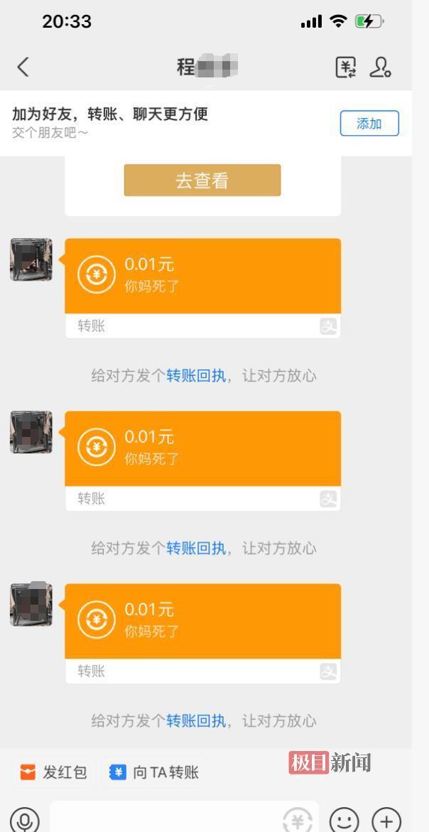 网暴者通过支付宝转账辱骂