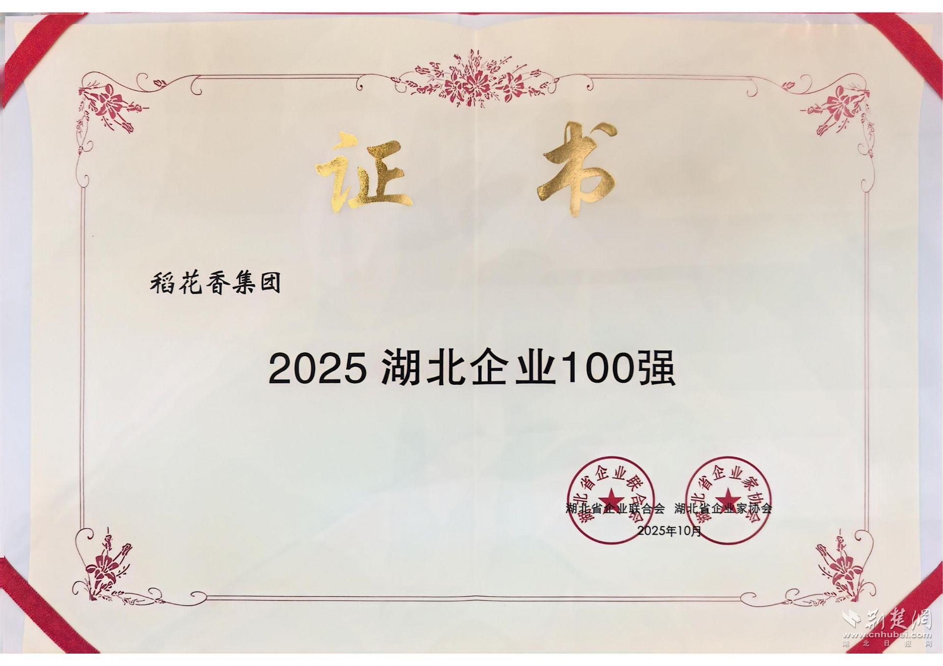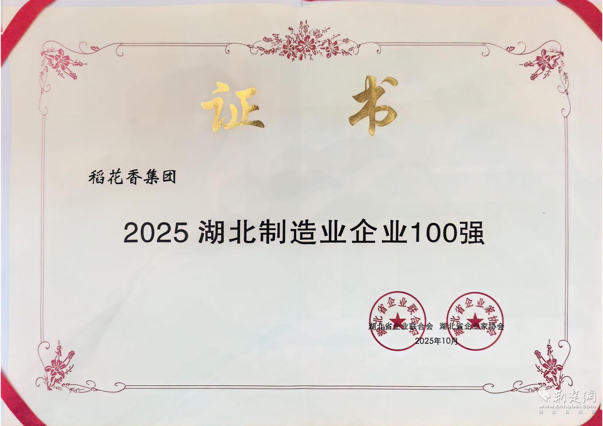 荆楚网(湖北日报网)讯(通讯员刘芹芹 卢晓红)10月30日,湖北省企业联合会、湖北省企业家协会在武汉发布“2025湖北企业三项100强”名单,稻花香集团蝉联榜单,位列2025湖北企业100强第15位、2025湖北制造业企业100强第3位。