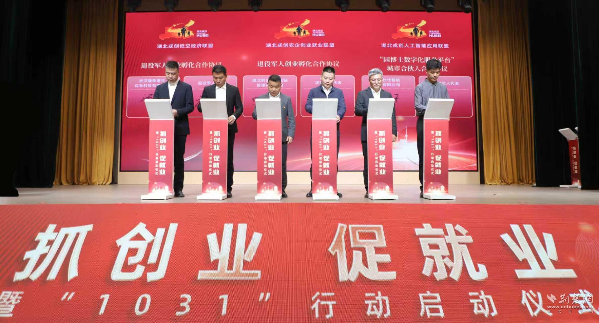 荆楚网(湖北日报网)讯(记者肖慧婷 实习生许纯源 通讯员 包晓霁 常梦星 王鸿家)10月31日下午,湖北省退役军人事务系统“抓创业促就业”暨“1031”行动在武汉启动。省退役军人事务厅党组书记、厅长杨爱东出席启动仪式并致辞,与军创企业家代表等共同启动行动。