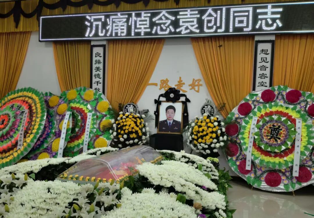 11月1日8时,湖北省英山县殡仪馆内庄严肃穆,哀乐低回,英山县公安局金家铺派出所所长袁创的遗体告别仪式在这里举行。近500名袁创生前的同事、同学、亲朋以及闻讯赶来的群众前来为他送行。