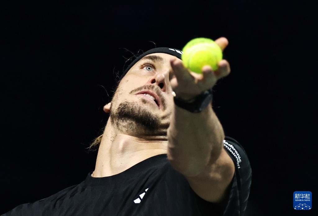 10月31日,兹韦列夫在比赛中发球。