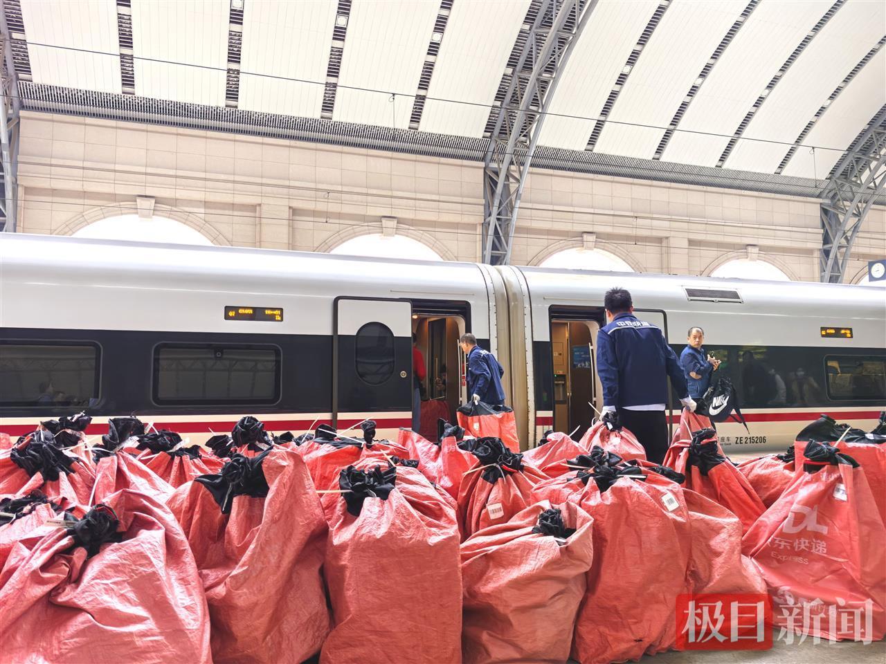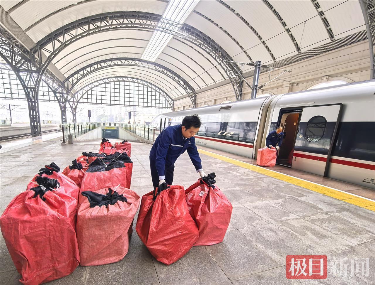 11月1日8时57分,G3463次列车装载着日用品、土特产等多个品类、总重达2吨的快递物资,从汉口站驶出,一路飞驰奔向成都东站。极目新闻记者从中国铁路武汉局集团有限公司(以下简称武铁)获悉,11月1日,“双11”网购高峰期铁路快运服务正式启动。