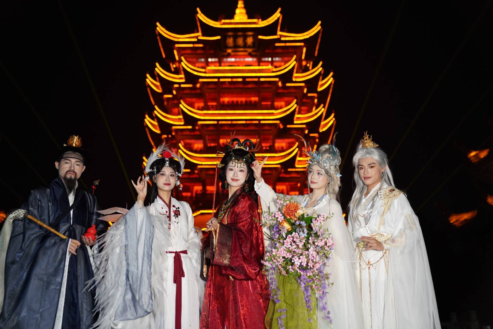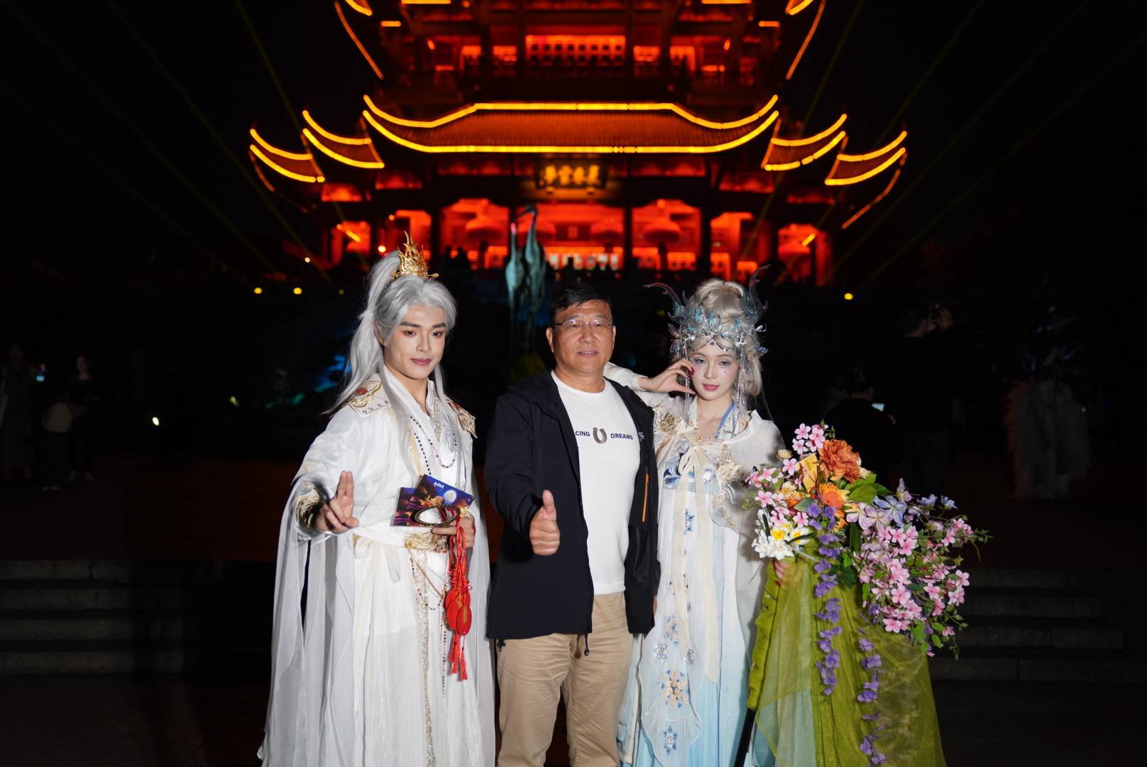 仙不在画里,而在人群中,在光影间,在每一个游客惊喜的眼神里。“我们让神话从书本走入现实,让游客不仅是观看者,更是故事的参与者,这是属于中国人的浪漫幻梦,这是‘夜上黄鹤楼’连续多年打造的神话之夜系列主题游园活动,打造一场场真实的‘东方幻梦’。”黄鹤楼夜游负责人表示,每一个互动,每一次对望,都是在续写这座千年名楼的新传说。