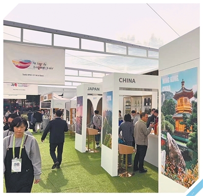 2025年亚太经合组织工商领导人峰会会场外,成员经济体在展示其特色产品。