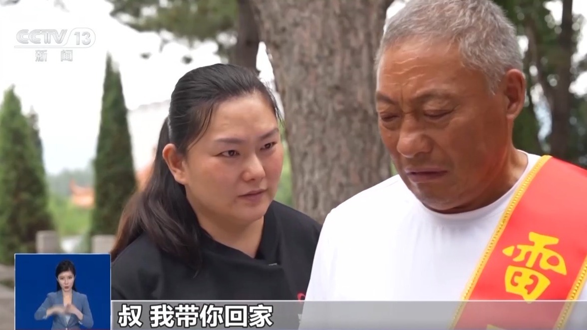 第二天一大早,孙嘉怿和志愿者一行人,陪烈士家属前往平型关烈士陵园,工作人员引导大家走进苍松翠柏间。在墓前,烈士家属的艰难找寻,都化作此刻的无声哽咽。这一天,雷家三代人足足等了90年。