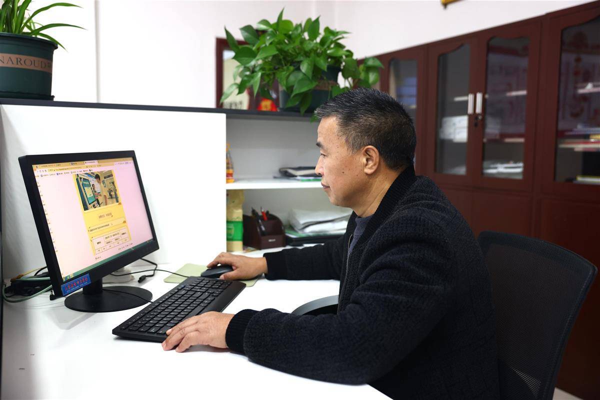 10月28日,巴东县金果坪乡党群服务中心,易盛荣正在编辑金果人社公众号。(湖北日报全媒记者 蔡俊 摄)