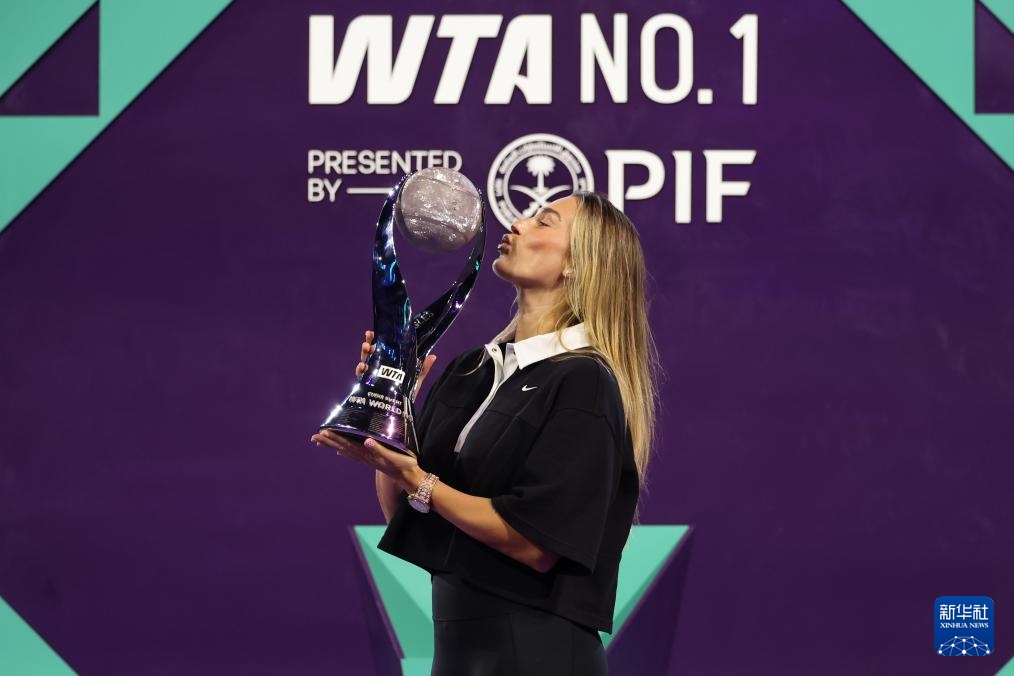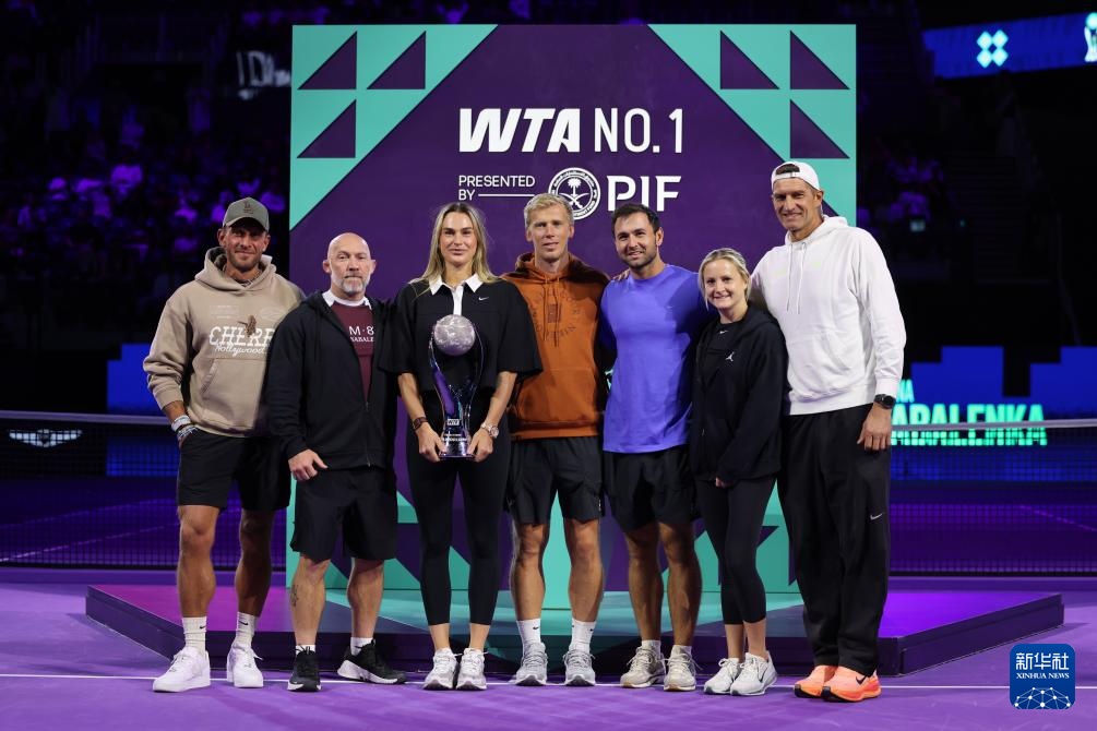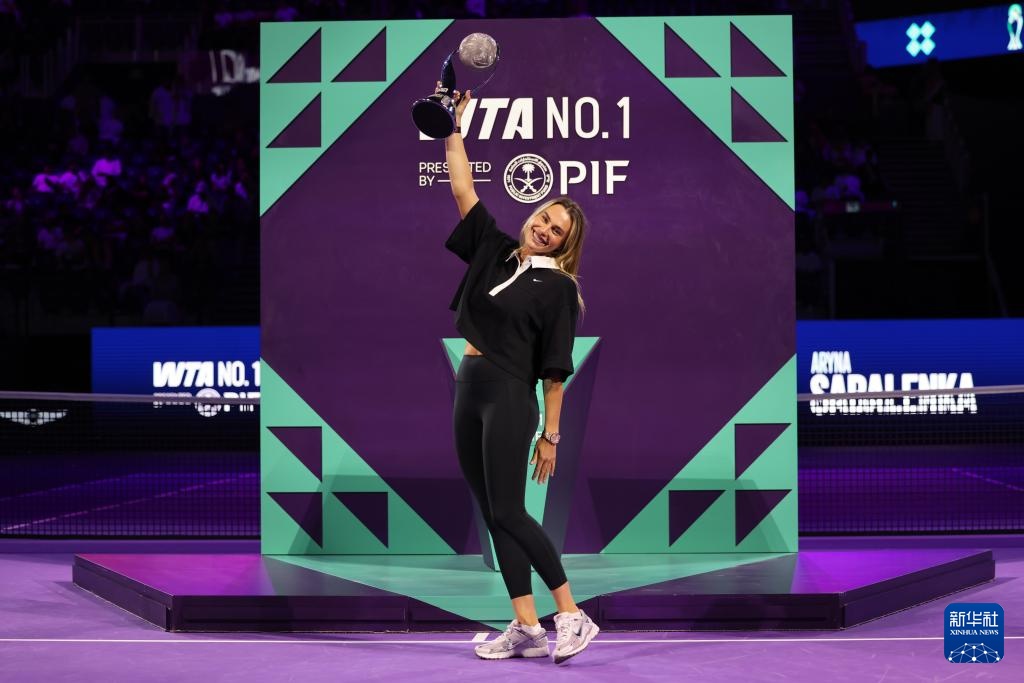 当日,在沙特阿拉伯首都利雅得举行的2025年女子网球选手协会(WTA)年终总决赛揭幕战前,由于白俄罗斯选手萨巴伦卡已提前锁定年终世界第一,WTA为其举行奖杯颁发仪式。