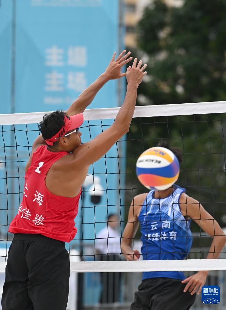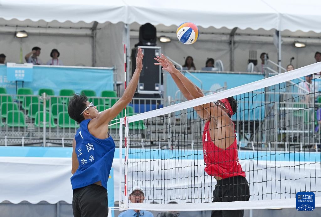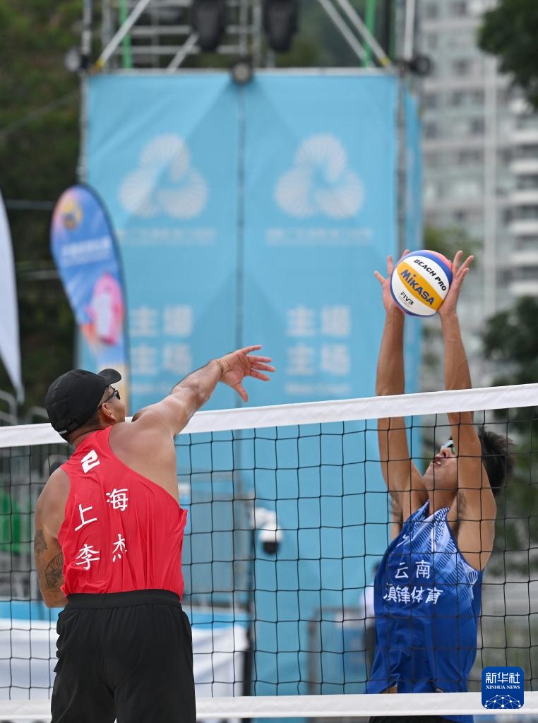 当日,在香港举行的第十五届全运会沙滩排球男子小组赛F组比赛中,云南队组合李伟/袁能飞2比1战胜上海队组合洪佳骏/李杰。
