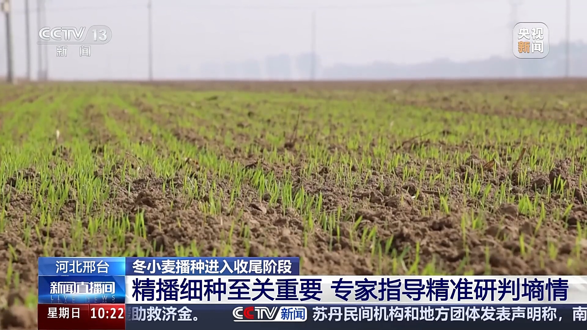 河北邢台是重要的冬小麦主产区,当地510多万亩冬小麦,六成以上播期推迟7到10天。记者来到这里时,当地冬小麦播种进入收尾阶段。农机在田野间轰鸣,划开一道道整齐的犁沟。农业技术专家穿行田埂,指导当地农户精准研判墒情。