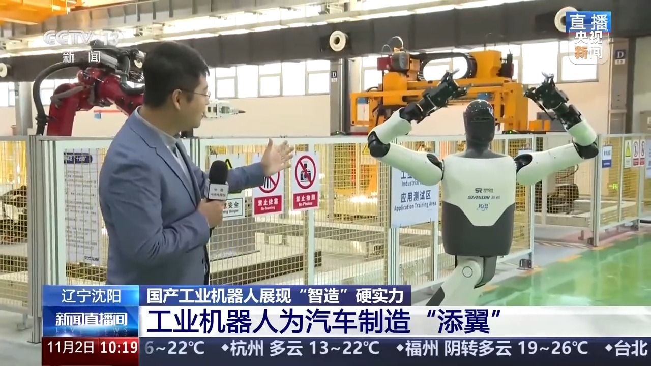 总台记者 李承泽:这里是被誉为中国工业机器人“大本营”的沈阳新松机器人中试车间,一场场工业机器人“大练兵”每天都在这里上演。从4公斤到500公斤的各类机器人,在焊接、码垛、磨抛等复杂场景中接受考验。