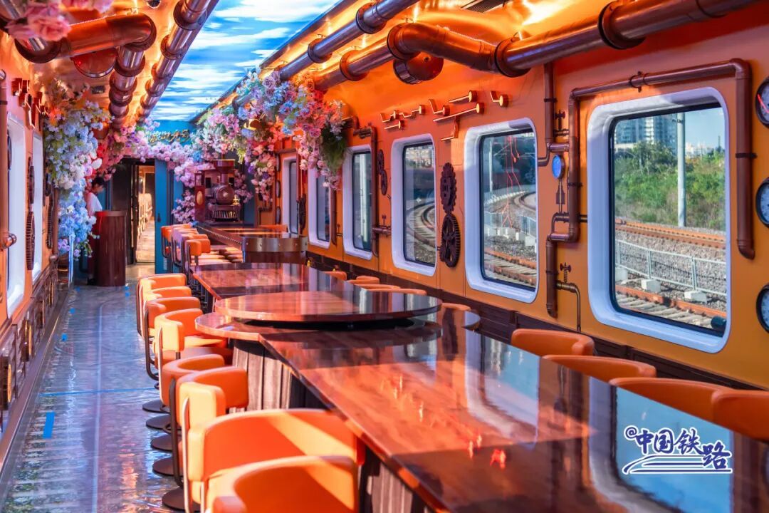 列车共有10节主题鲜明的特色车厢,分别为6节怀旧客座车厢、1节蒙太奇幻境互动演艺车厢、1节珍奇花园俱乐部车厢、1节沉浸式“时空穿梭机”车厢和1节专属VIP车厢。