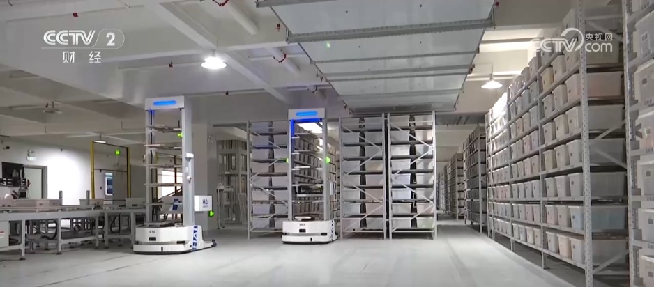 除了在前端市场和产品上发力,玩具企业也在后端供应链管理上“苦练内功”。眼前看到的这个双层智能仓库,储存了8万种积木颗粒,20台机器人正根据编号将每颗积木提取进行自动分拣包装。负责人称,今年以来订单不断增长,每天平均有上千万颗积木颗粒被生产下线,这对存取和配送提出了更高要求。