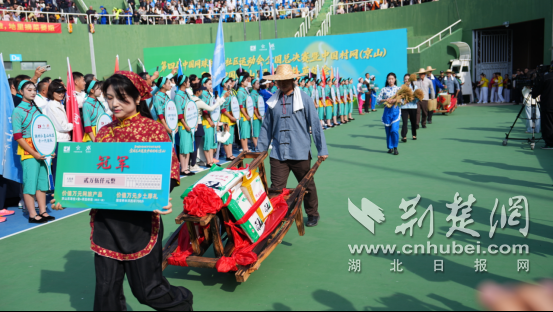 据了解,本届中国村网(京山)在奖品设置上“村味”十足。获奖队伍将获得“奖金+特色农产品+网旅产品”组合奖励。在开幕式现场,通过独轮车、斗笠、竹篮等乡村道具呈现国宝桥米、龟胶产品、神地鸡蛋等特色农产品,让赛事充满浓厚的“乡土气息”。网旅产品涵盖京山农场、温泉和特色酒店以及网球运动体验,为获奖运动员提供丰富的休闲和运动选择,以此延长赛事的经济链条,推动“网球+旅游”产业融合发展。