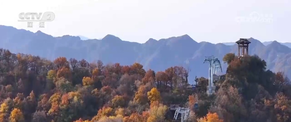乘坐在平稳运行的吊厢里,最直观的感受就是视野的震撼。大家看,窗外是沿途的秦岭秋色,秦岭巍峨而庄严,而秋色像一位温柔婉约的画家,以金黄、火红、深绿为墨,挥洒自如。山与色,一刚一柔、一静一动,相互映衬,勾勒出一幅静谧而深邃的秋日画卷。