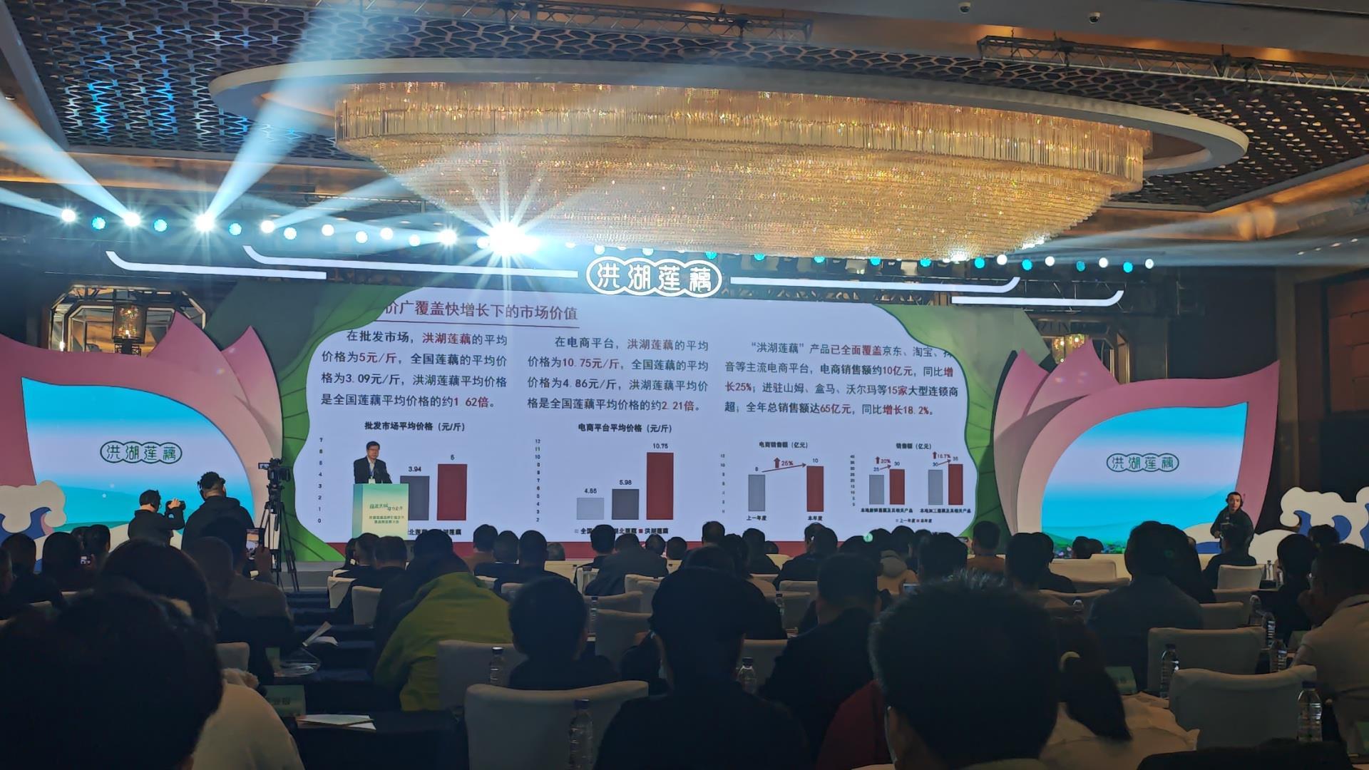 湖北省农业农村厅党组成员、总经济师曾德云在致辞中称:品牌扶持政策构建起“省级重点品牌+市县特色品牌+企业产品品牌”三位一体的品牌矩阵。目前洪湖莲藕已打造成全省唯一的莲藕省级重点区域公用品牌,先后入选农业品牌精品培育计划和中国农业品牌目录,获得国家地理标志产品、中国百强农产品区域公用品牌等殊荣。他表示,省农业农村部门将落实“藕七条”扶持政策,在基地建设、精深加工、冷链物流、品牌营销等方面给予全方位保障。