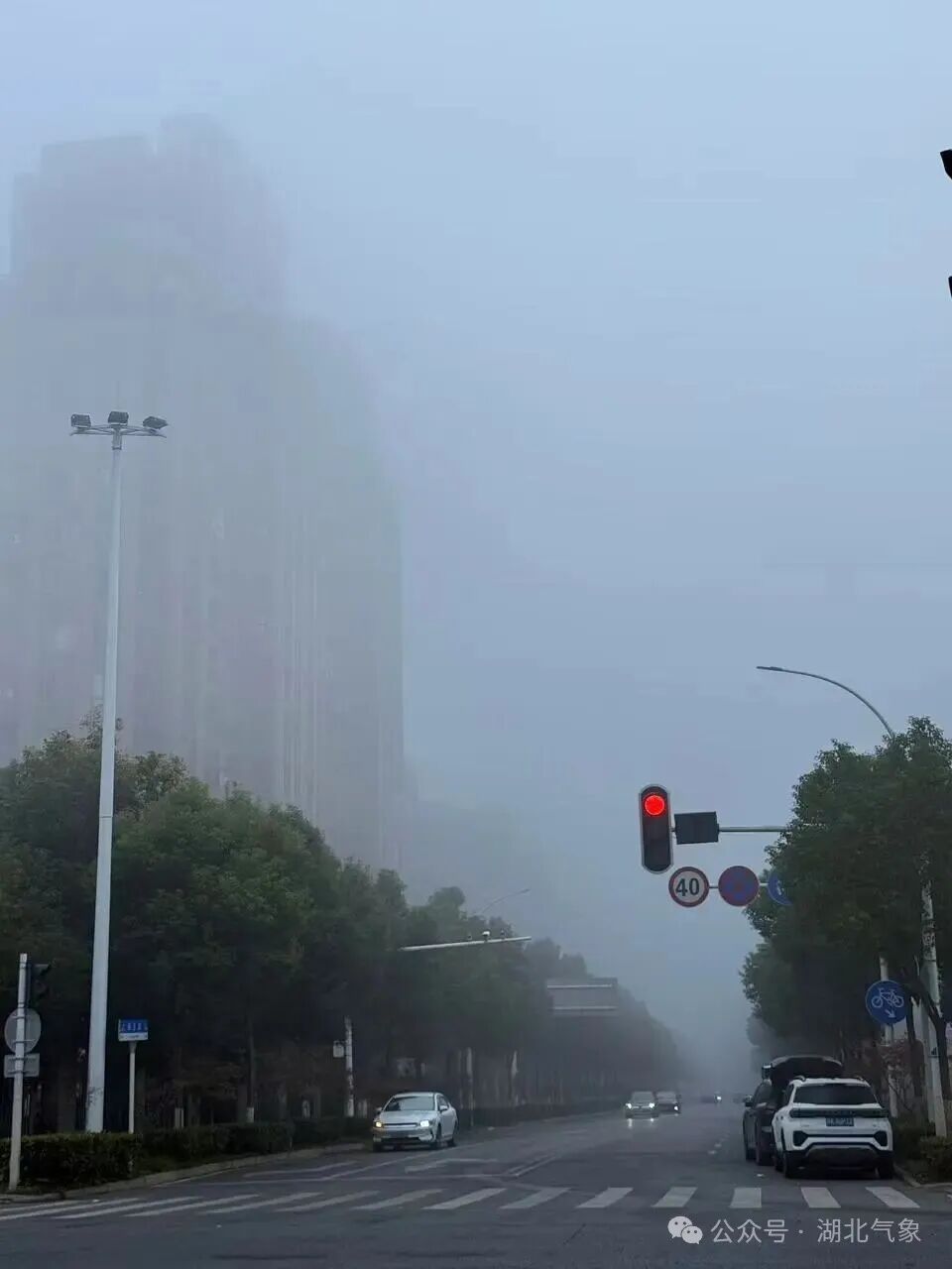 2日7时许,武汉大雾弥漫,能见度不佳。图源:湖北气象