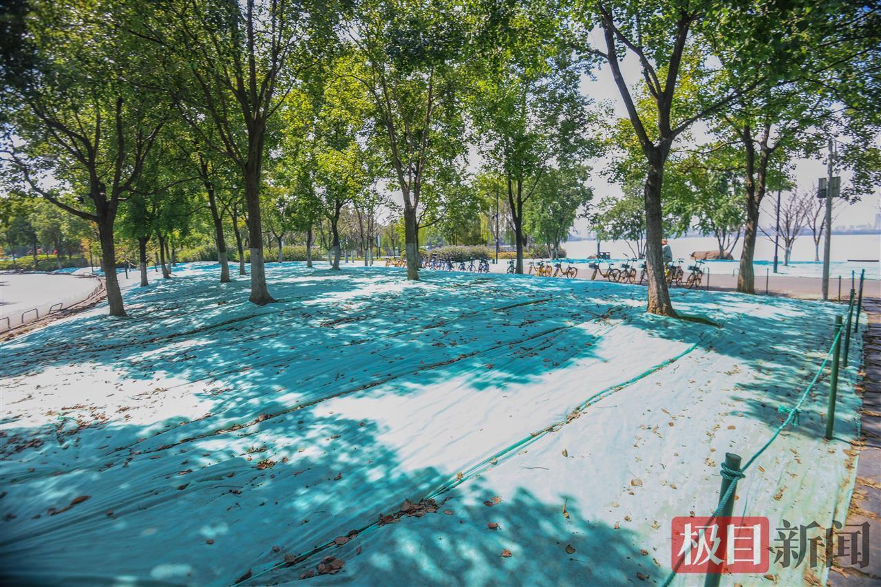 经过新一轮的草坪换“装”,11月2日,武汉东湖风景区数以万亩计的草坪上,已覆盖上了薄膜,养护人员已在膜下种上了新草籽。