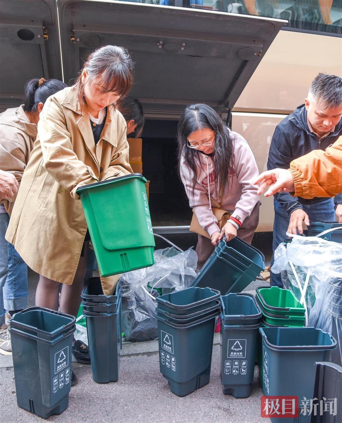 10月31日,活动主办方向荆州市沙市区解放街道十方庵社区南湖小区的居民代表发放“两桶一袋”(极目新闻记者 黄志刚 摄)