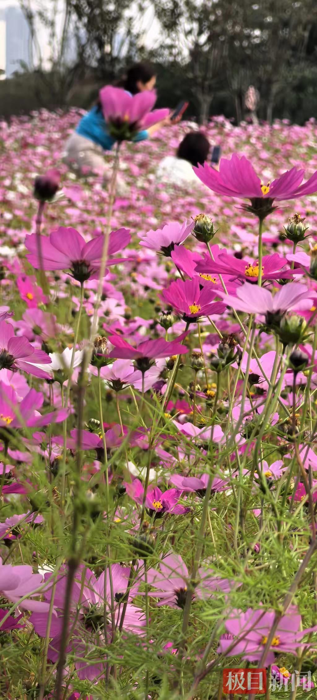 “快快,这里,这里拍照好看,你到这,我给你拍。”今年65岁的李阿姨用手机摆好架势招呼着同伴。另一旁,五六个阿姨手搭着肩,站成一排,一张标准的多人游客照又诞生了,旁边甚至有些架着专业的三脚架设备,举着相机的朋友们,就为了抓住这一年只有一次的浪漫花海。