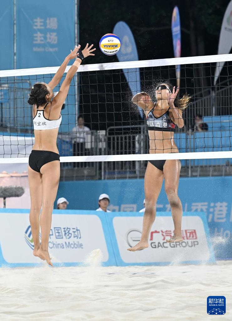 当日,在香港举行的第十五届全运会沙滩排球女子小组赛F组比赛中,香港队组合欧阳玮欣/袁廷芝2比0胜辽宁队组合富宇菲/刘宜欣。