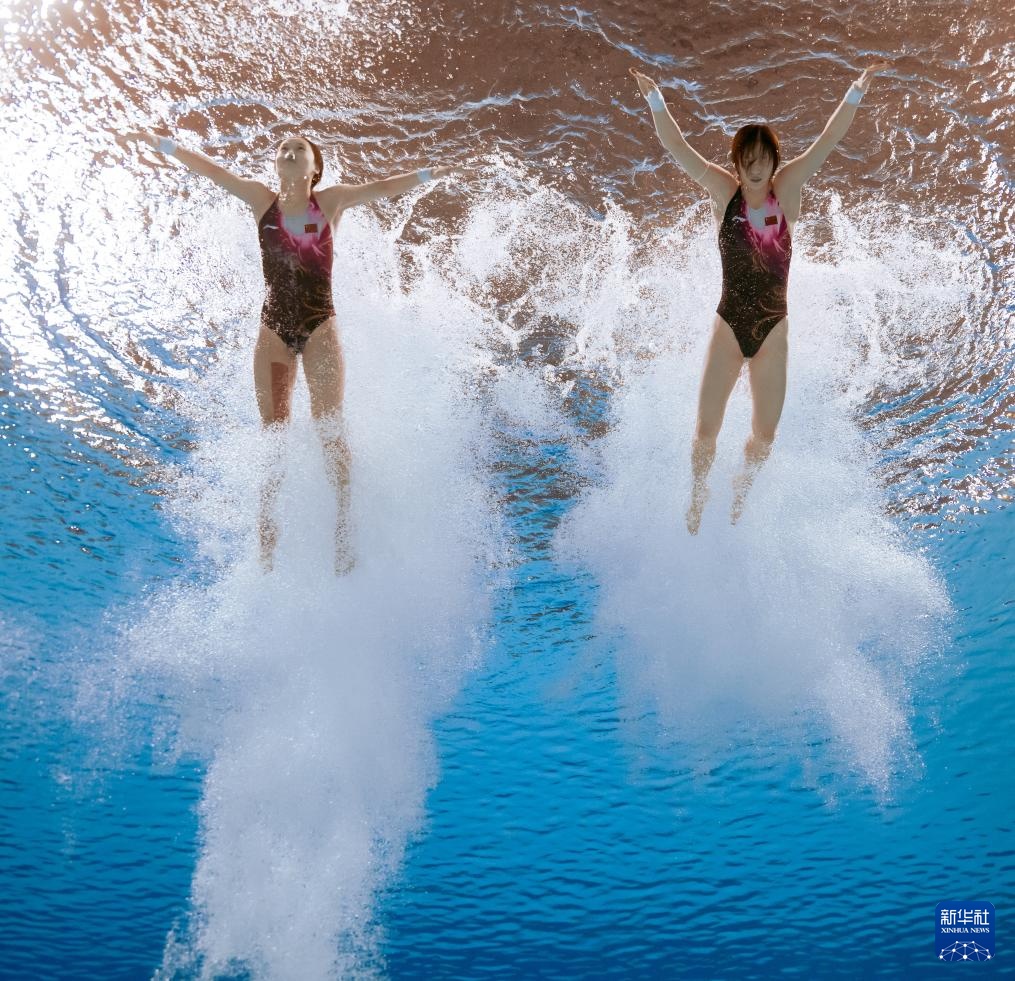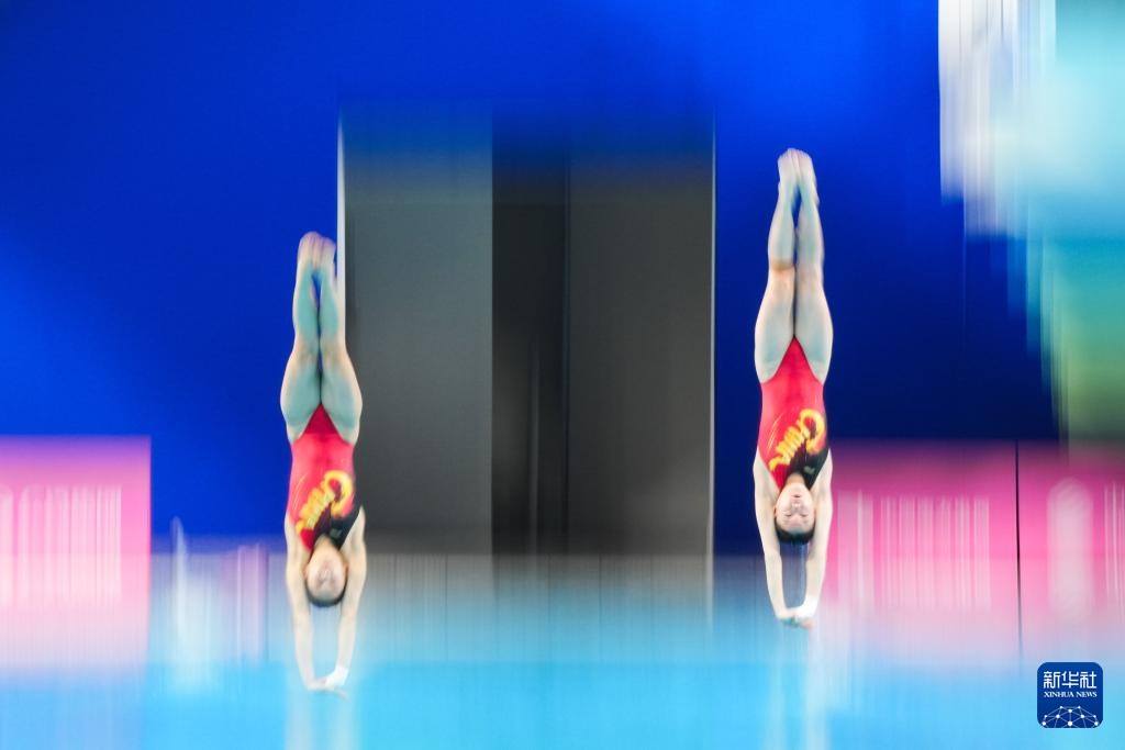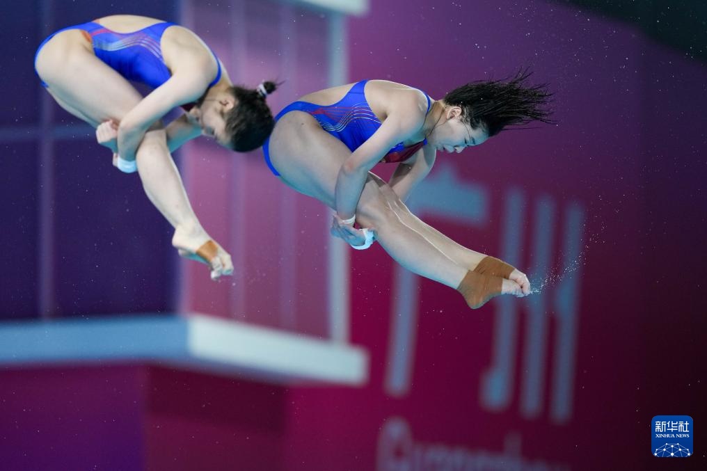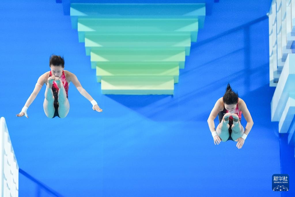 11月2日,广东队组合全红婵/王伟莹在女子团体赛双人10米跳台项目比赛中。