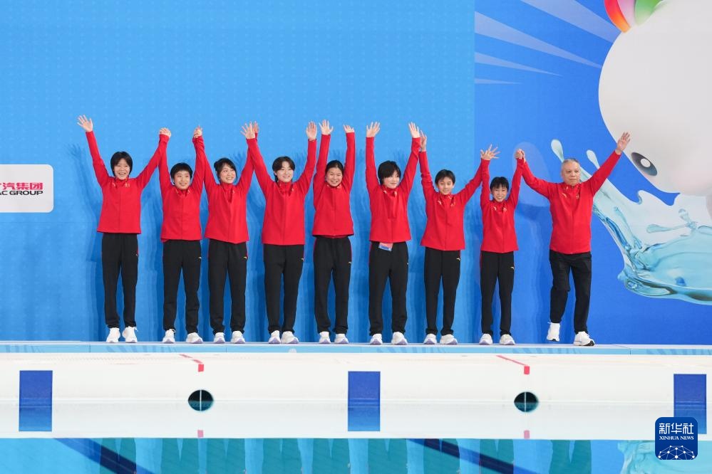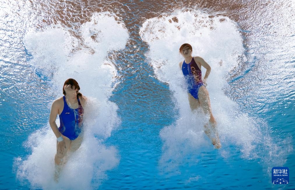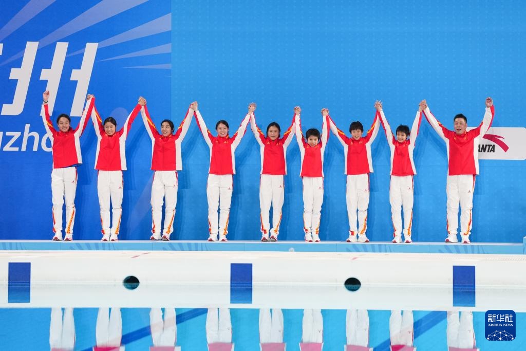 11月2日,广东队组合全红婵/王伟莹在女子团体赛双人10米跳台项目比赛中。最终,广东队夺得冠军。