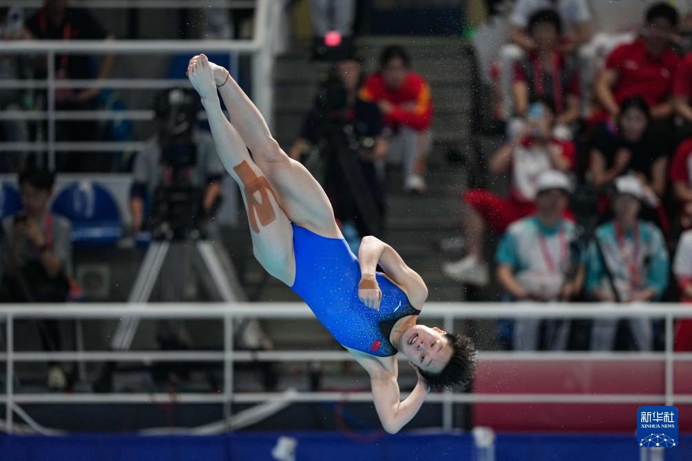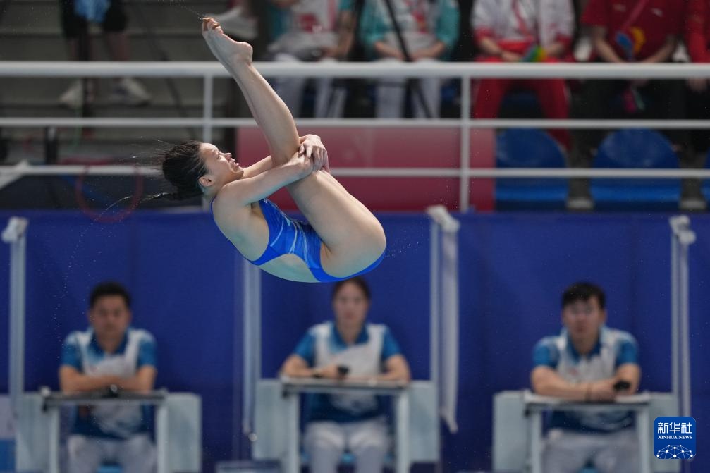 11月2日,上海队选手掌敏洁在女子团体赛3米跳板项目比赛中。最终,上海队获得第四名。