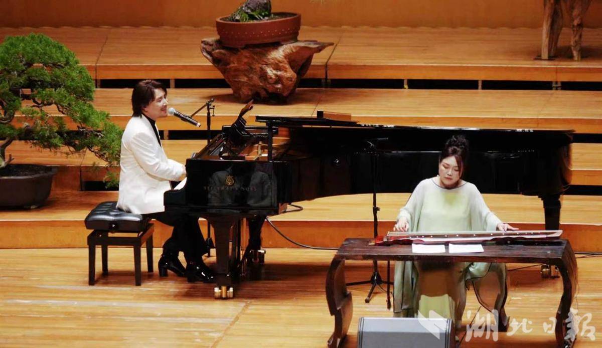 流行音乐人曹轩宾与古琴名家赵家珍携手演绎《别君叹》,将这首通过央视《经典咏流传》节目爆火的歌曲再现于琴台音乐厅的舞台。音乐会尾声,曹轩宾和赵家珍接连演绎两首特别为武汉观众准备的《在此》和《江水谣》,“古琴在此,黄鹤在此……”“我住长江头,君住长江尾,日日思君不见君,共饮长江水……”钢琴和古琴交融回荡,让全场观众又惊又喜。