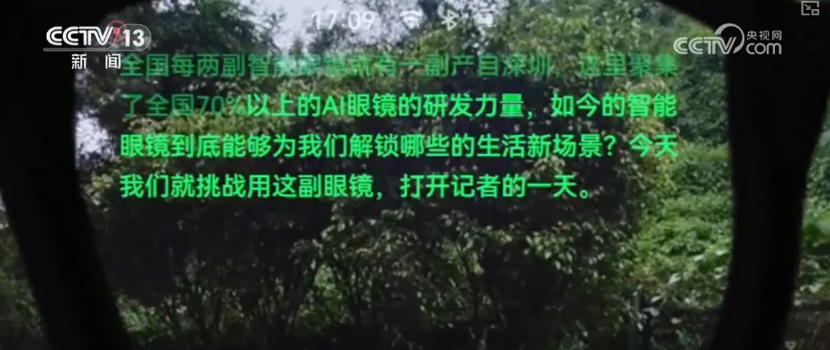 全国每两副智能眼镜就有一副产自深圳,这里聚集了全国70%以上的AI眼镜的研发力量。记者的这段出镜词,就是用智能眼镜的提词器功能拍摄的。可以看到,记者的眼神依旧直视镜头,而且即使是在这样的户外光线之下,都可以清晰看到屏幕上的字,同时还可以随着记者的语速自然调节,提词功能稳稳拿捏。