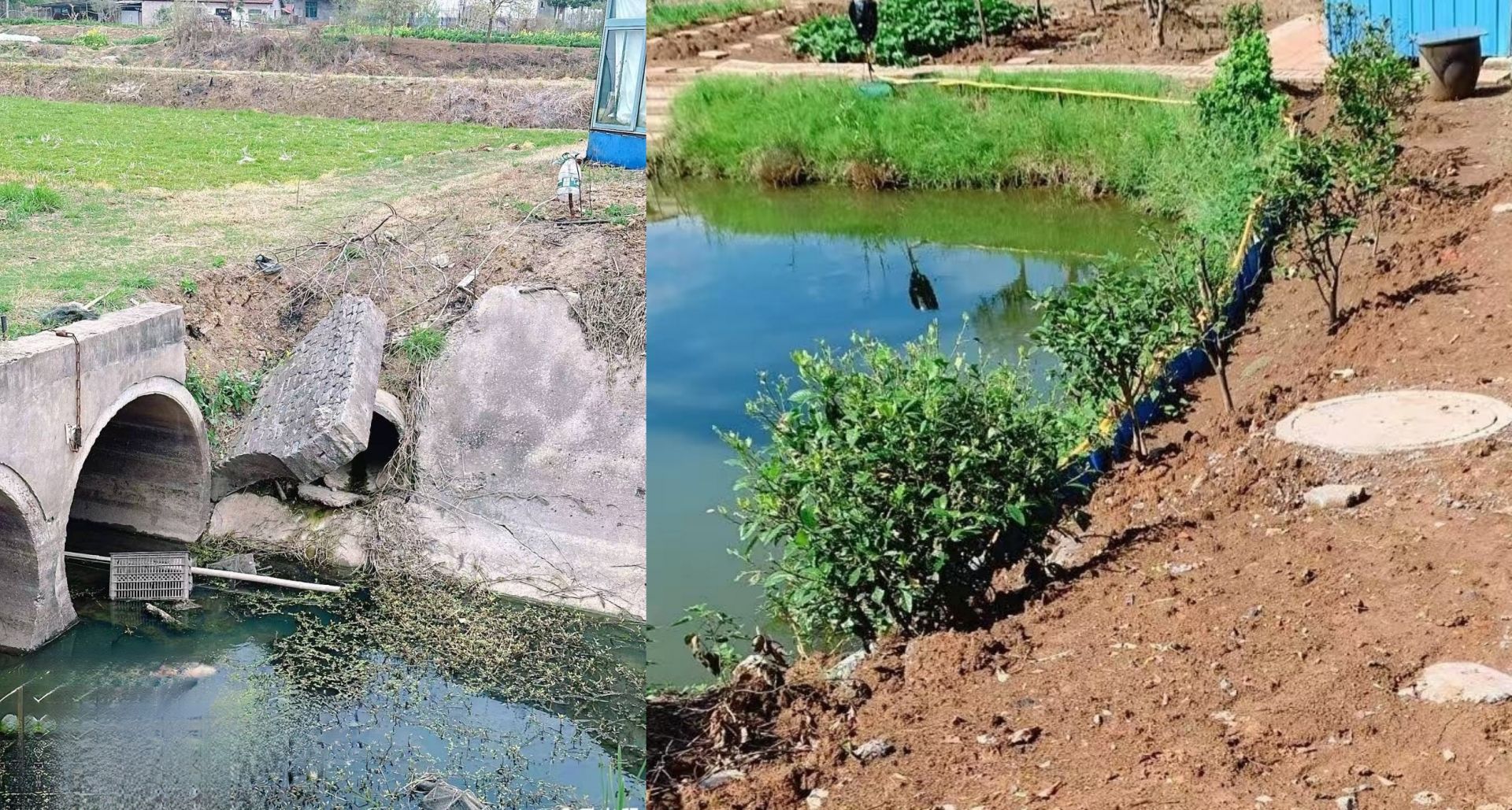 整改前生活污水直排进附近河渠,整改后扩充改造地下污水管道,附近水质已有所改善