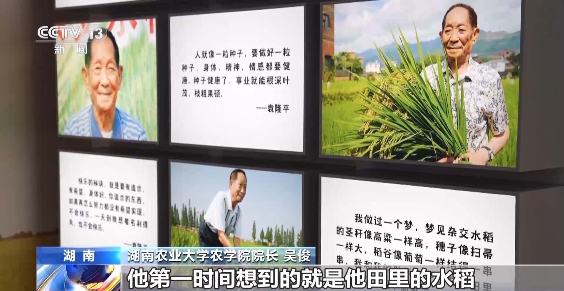 湖南农业大学农学院院长 吴俊:比如下雨或者变温了,他第一时间想到的就是他田里的水稻,他每天早上都要去田里看看他的水稻。