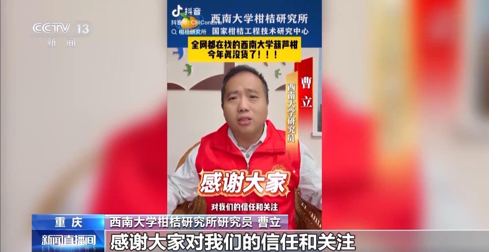 前段时间,各种求购西南大学柑桔研究所橘子的帖子悄然出现在各个社交平台,“求链接”“在哪儿买”“等补货”是这些求购帖下面最常见的跟帖。网友们的购买热情吓得柑桔研究所赶紧挂出视频,高呼“卖完了”!