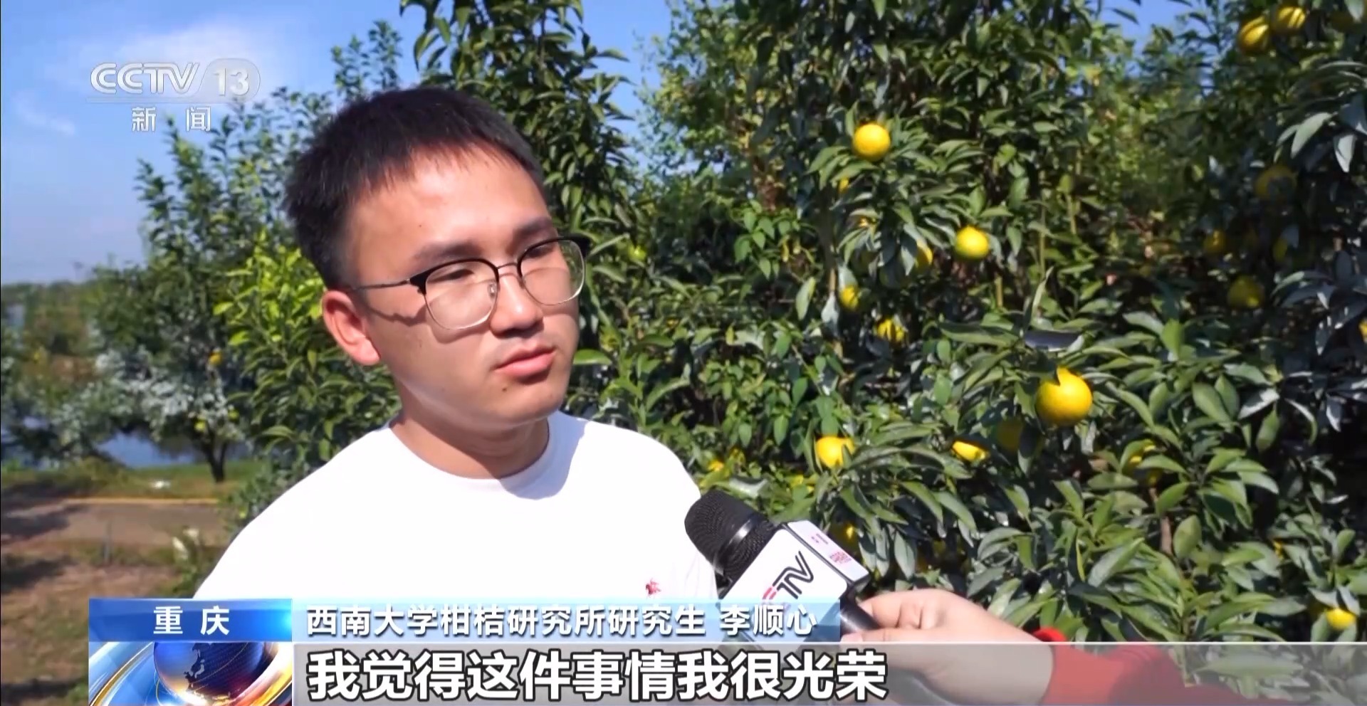 西南大学柑桔研究所研究生 李顺心:这件事情我觉得很光荣,因为我们农学生不仅是在课堂里面学习知识,更要去到一线、到市场中去调研,去打通销售环节,把成果最后一公里打通出去。这对我们其实很有帮助,对我自己的成长也很有帮助。