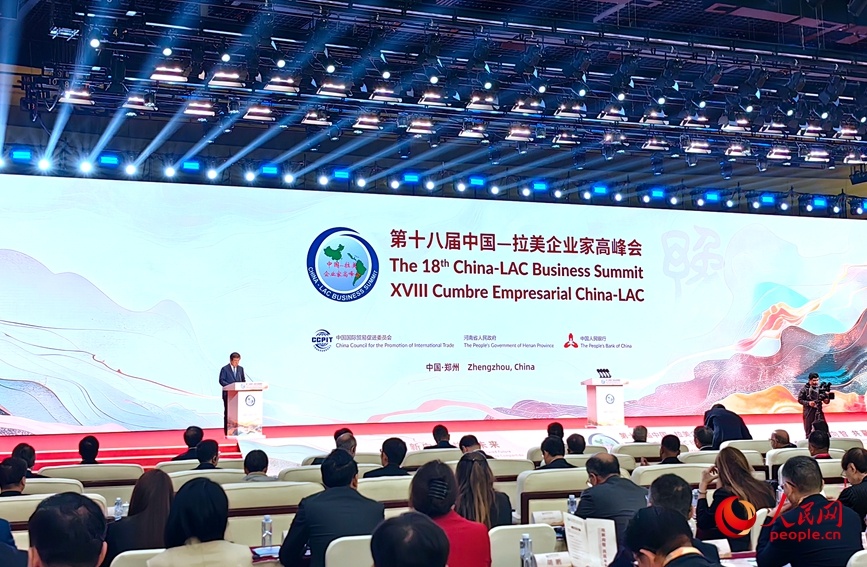 人民网郑州11月3日电 (记者宋芳鑫)11月3日,第十八届中国——拉美企业家高峰会在郑州开幕。来自近30个拉美和加勒比地区的政府官员、驻华使节,以及境内外贸促机构、商协会代表等齐聚一堂,共话经贸合作、共享发展机遇。