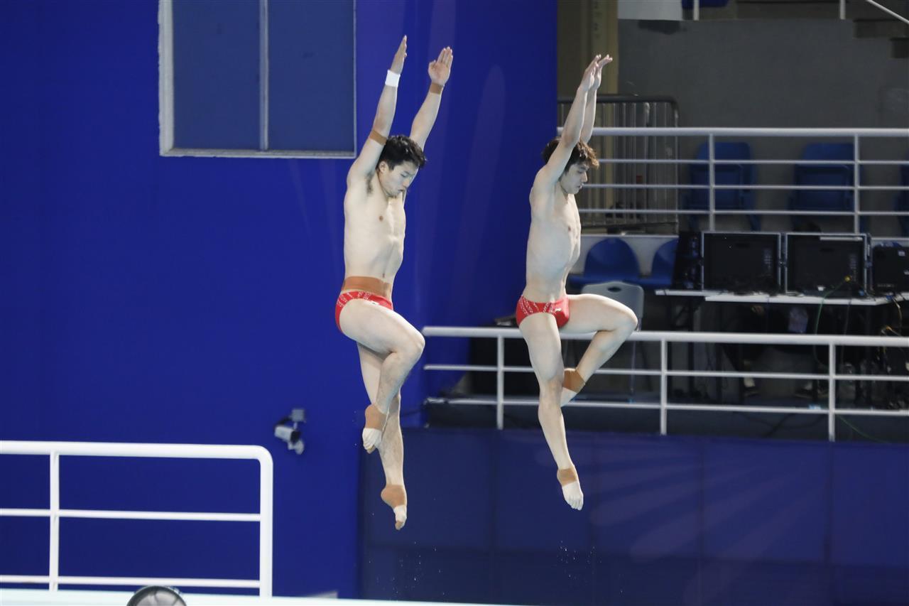 首场进行的男子双人3米板比赛,湖北队派出王宗源和郑九源、严鑫和张磊参赛,前者在第8位登场,后者在第20位登场。王宗源和郑九源在首跳就上演了精彩表现,得分86.70分,全场最高。随后两跳,两人分别跳出了88.92分和91.26分,最终以总得分266.88分获得第一。湖北队另一对组合严鑫和张磊总得分为212.10分,排名第7。