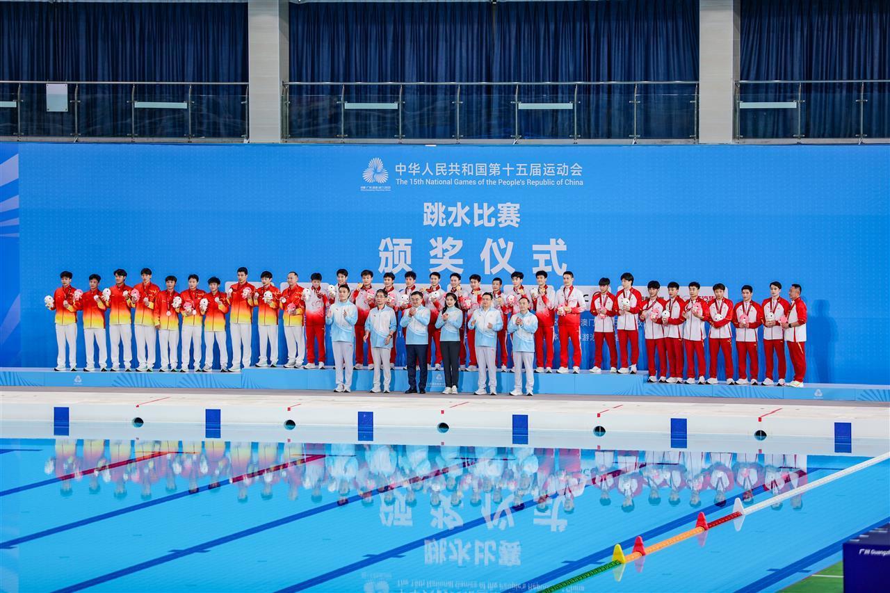 11月3日,第十五届全运会跳水男子团体比赛在广东奥体中心游泳跳水馆进行。随着晚间进行的男子双人10米台比赛结束,最终结果出炉,由奥运冠军王宗源领衔的湖北队,以总分2745.73分摘得银牌,创造湖北队在全运会该项目的历史最佳战绩。