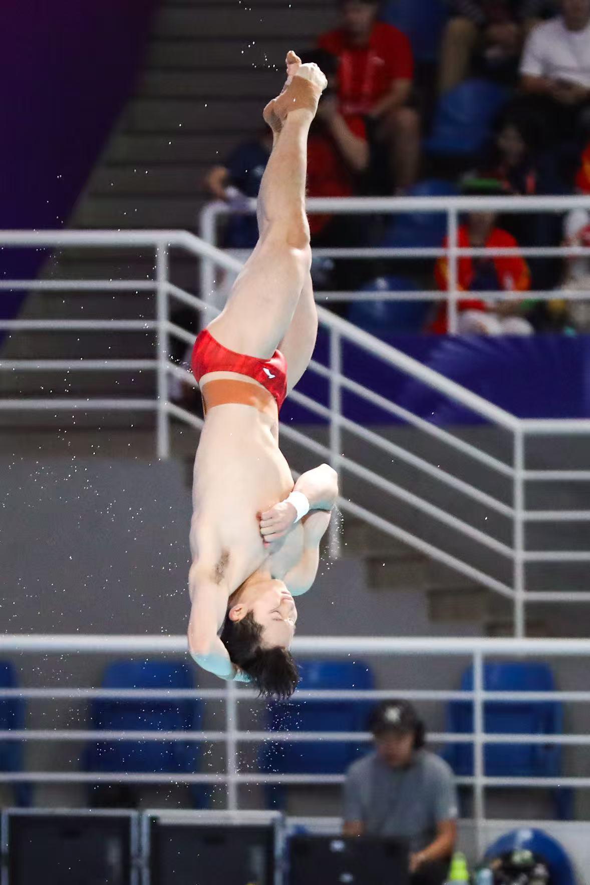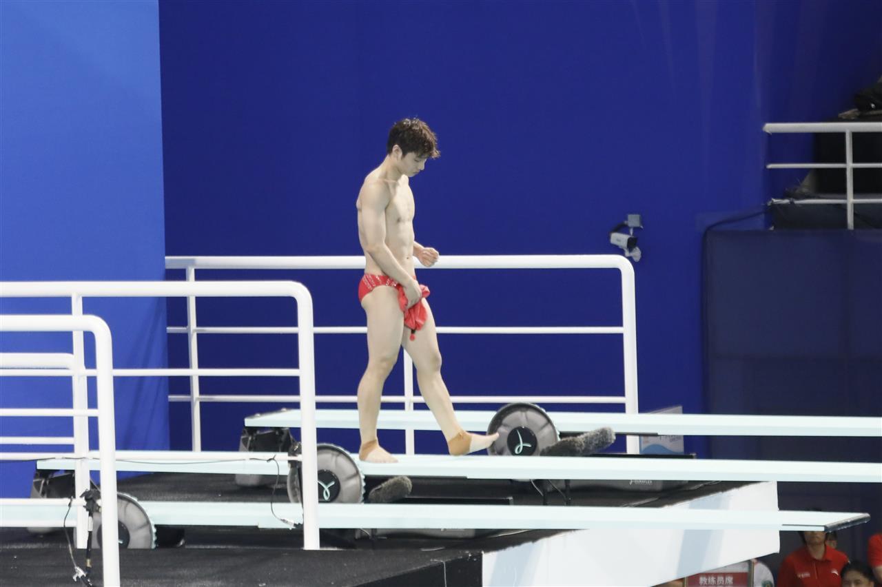 晚间进行的男子3米板比赛,湖北队派出了此前搭档出战双人比赛的王宗源、郑九源分别出战。比赛中,郑九源在第1位登场,王宗源在第7位登场。前三跳上,王宗源发挥出色,得分均排名第一。郑九源也发挥稳定,还在第五跳中得到了全场最高分96.90分。