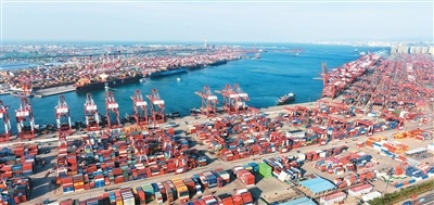 货物贸易是国际收支的重要组成部分。“十四五”以来,国际收支口径货物贸易进出口规模不断扩大。 图为山东港口青岛港繁忙作业的外贸集装箱码头。 俞方平摄(人民视觉) |