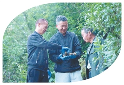 北海镇打苴村党员干部察看林下天麻采收情况。 杨治文摄 |