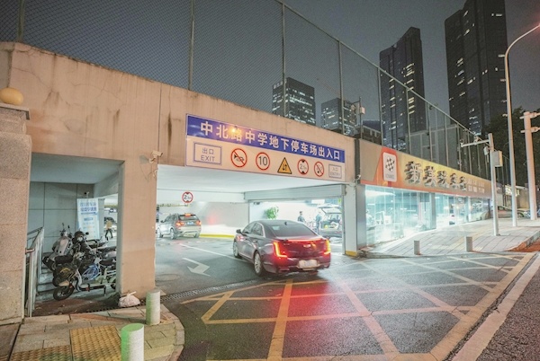 对外开放的中北路中学地下停车场 摄影:楚天都市报极目新闻记者黄士峰