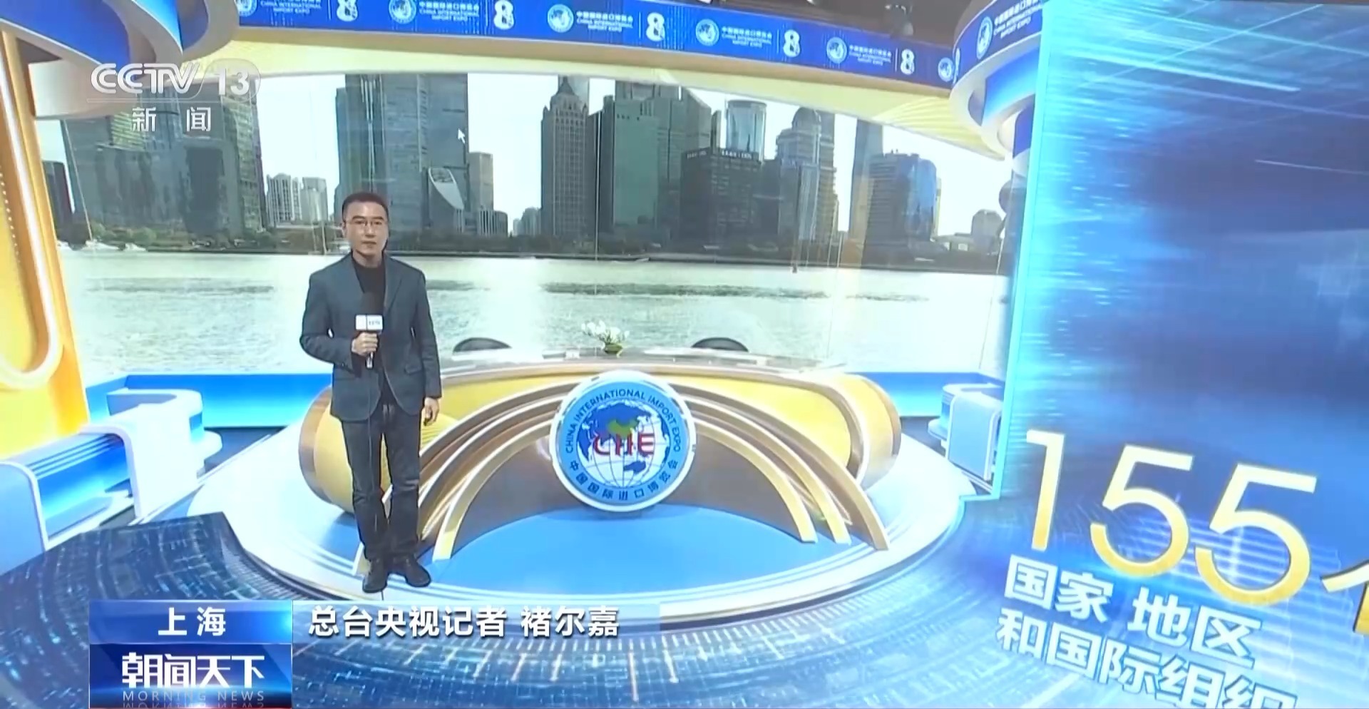 总台央视记者 褚尔嘉:这里就是总台在上海北外滩设立的演播室,在进博会期间,来自展会现场的情况和实时的数据,可以通过我旁边的虚拟现实技术,最快地呈现在观众面前,为大家传递本届进博会的盛况。